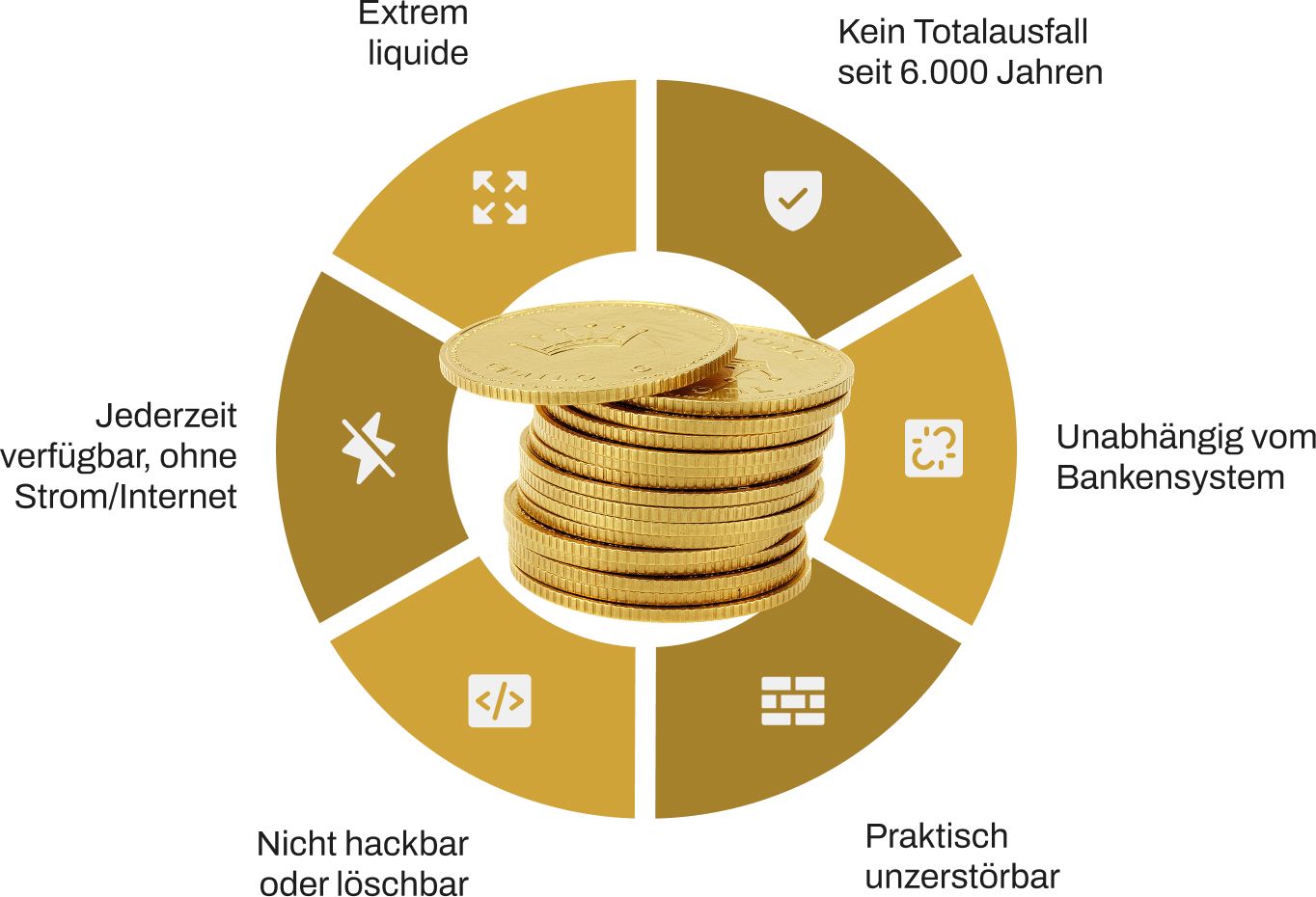 Mit physischem Gold brechen Sie aus diesem Kreislauf aus: Gold kann nicht entwertet werden wie Bankgut-haben in Fiat-Geld. Es ist Ihre Absicherung für Ihr Vermögen!